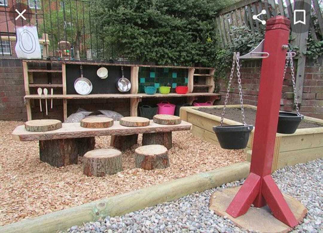 Seria un espai infantil creat amb materials sostenibles, respectuosos i segurs tant pel medi ambient com pels infants. Una àrea natural i amb desnivells amb l’objectiu d’afavorir el desenvolupament psicomotor dels infants, la manipulació i l’experimentació, seguint la línia pedagògica del centre.